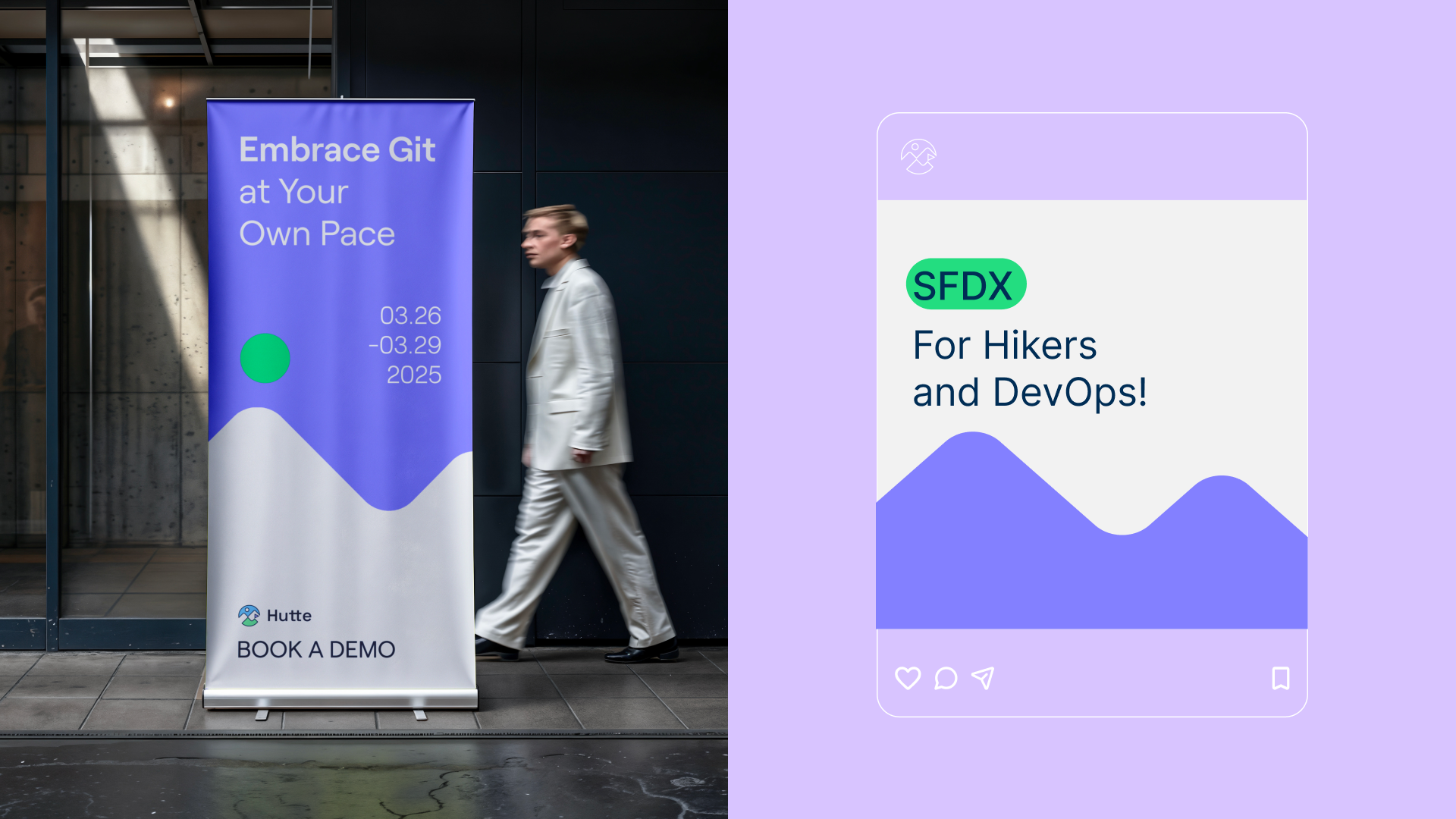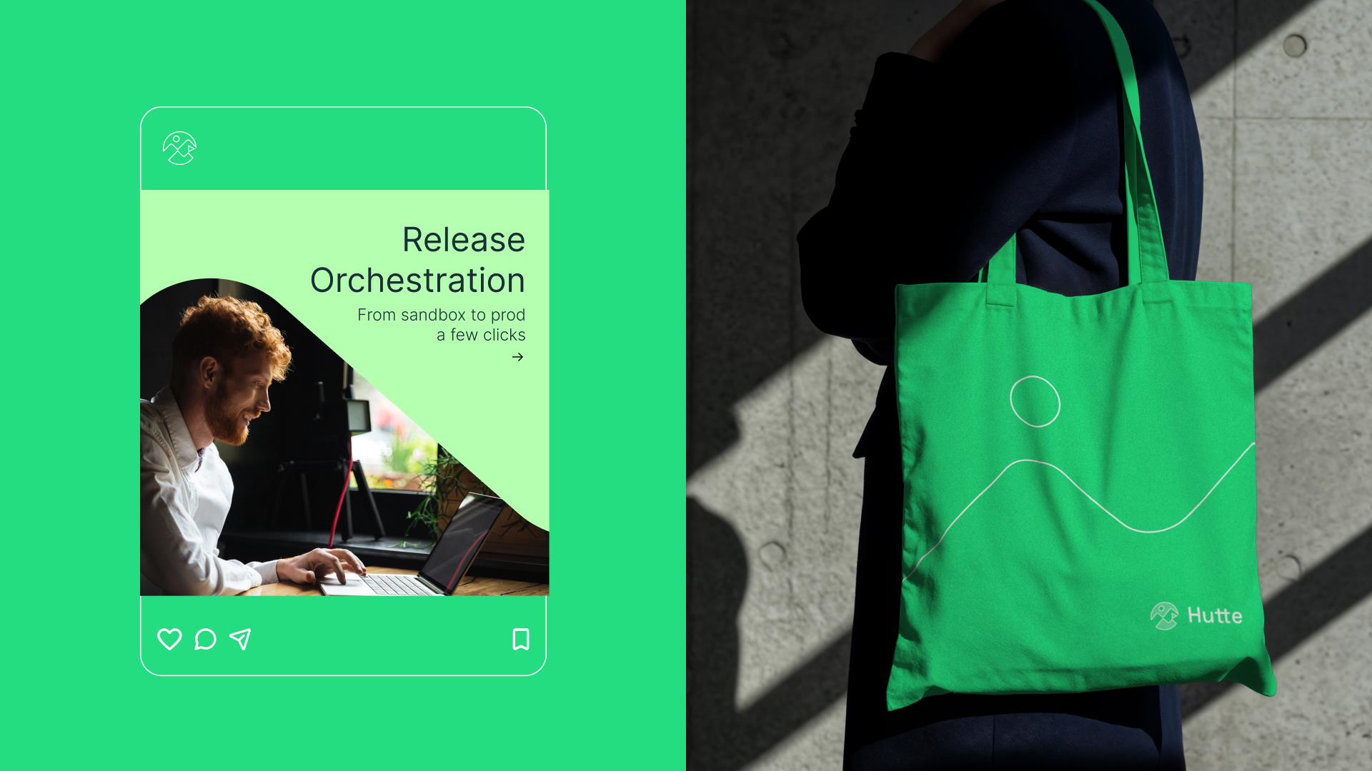 Hutte is a DevOps platform designed to simplify Salesforce environment and release management. For their brand refresh, we focused on making the product’s functions easy to understand through a fresh, approachable visual language. Inspired by the spirit of outdoor sports and mountain climbing, symbolizing reaching the summit, we developed a range of brand assets to meet their needs, including infographics, brand iconography, sales presentations, and social media templates that convey clarity, energy, and a sense of exploration.