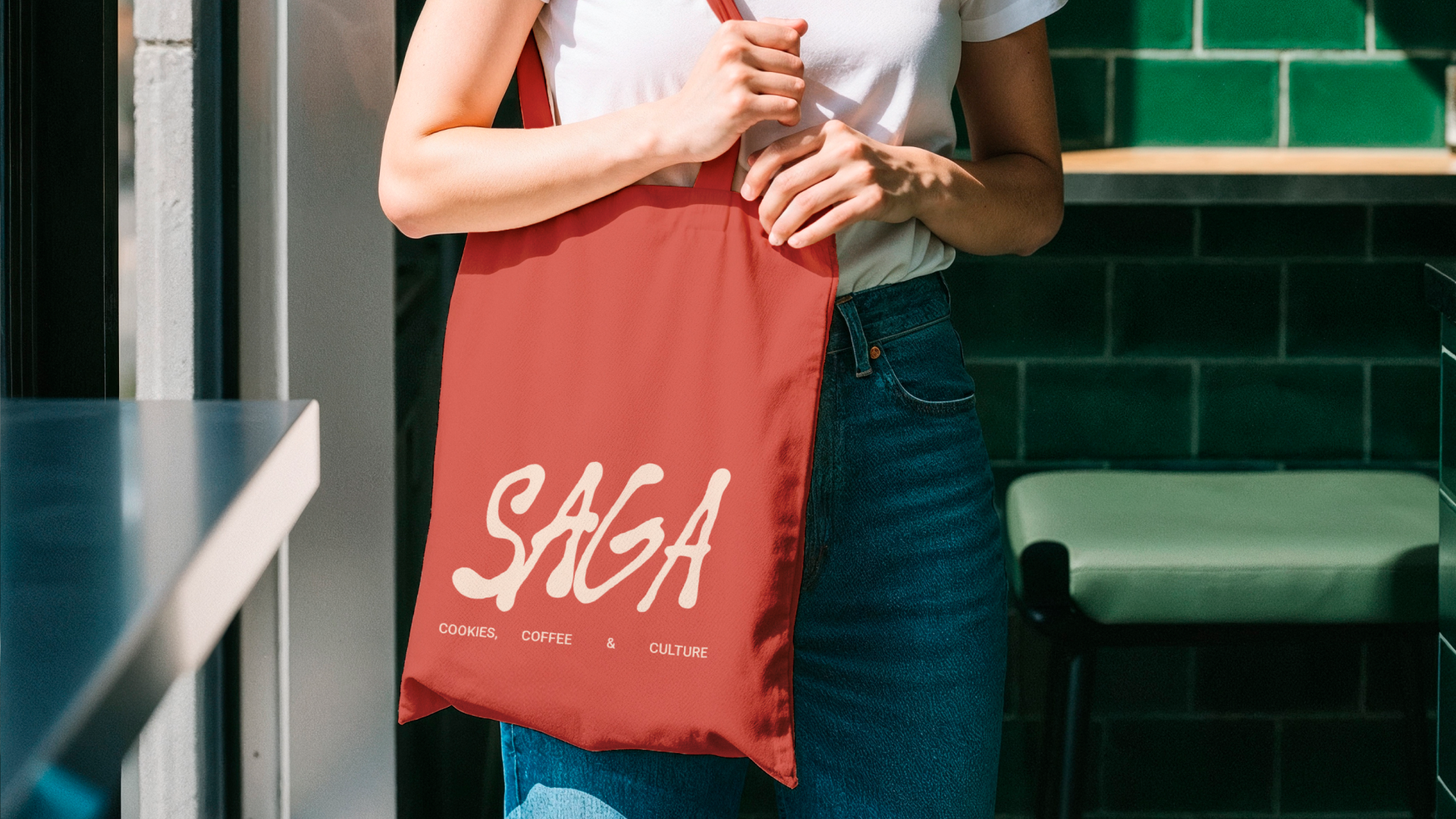 Saga is a space that combines cookie baking with a cultural hub, where visitors can have lunch, enjoy a coffee, or attend a concert. The idea was to create an identity that reflects this multifaceted concept. Making it inviting and positioning Saga as more than a bakery, but a gathering place. In collaboration with Mafalda Morais